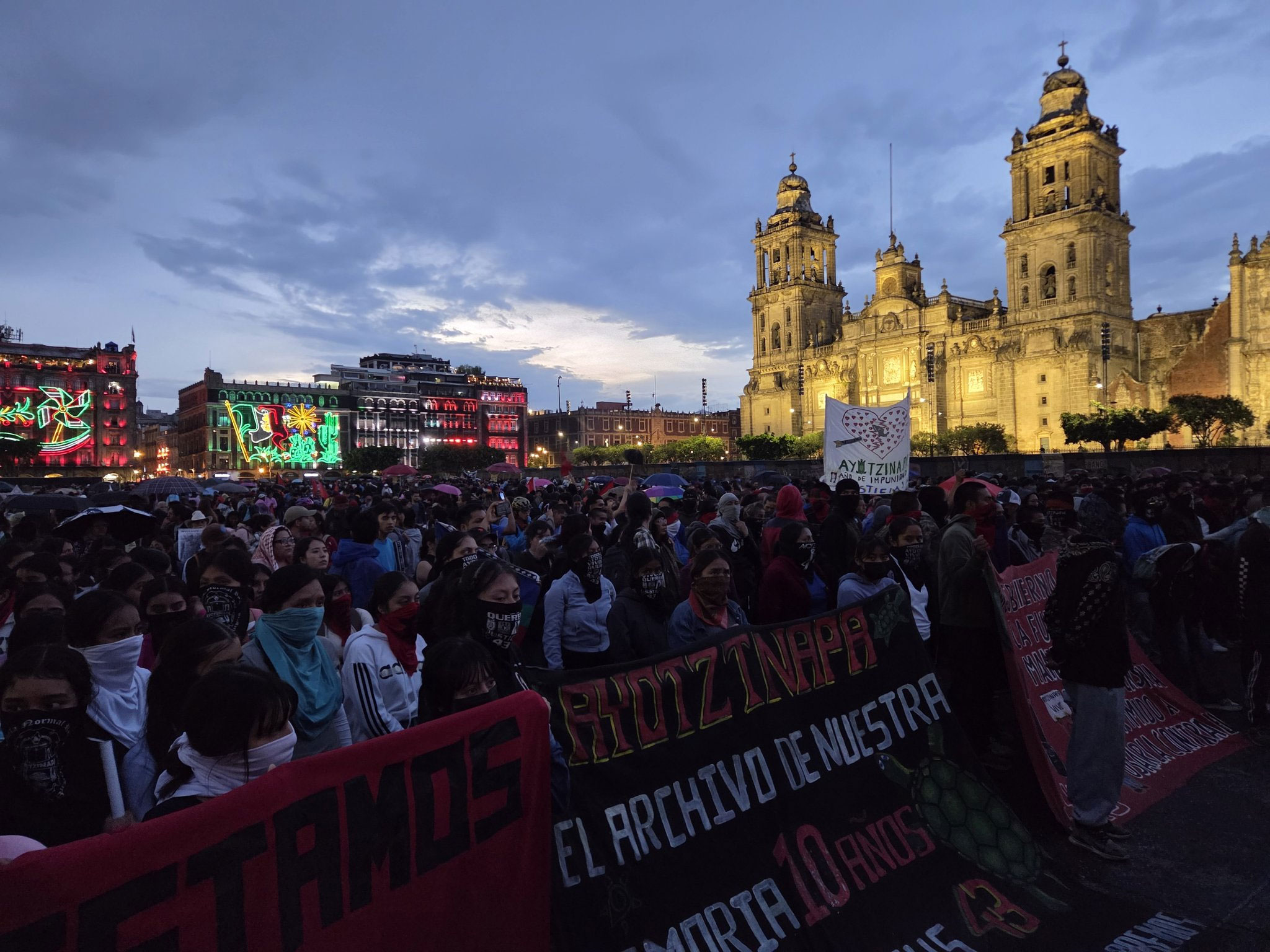 Upon arriving at the capital’s Zócalo, some of the protesters called on President Claudia Sheinbaum Pardo to ensure that her administration not end without continuing the investigation into the students, especially regarding their whereabouts.