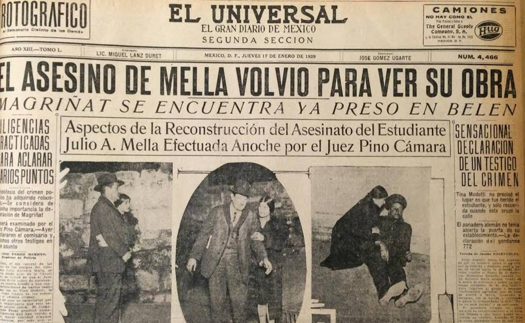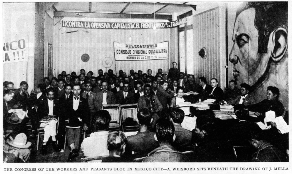 In Mexico, Mella was a member of the Communist Party of Mexico, where he served as interim general secretary. He was also an editor for the newspaper El Machete, where he wrote under the pseudonyms Cuauhtémoc Zapata and Kim. Furthermore, he participated in the Anti-Imperialist League of the Americas (LADLA), an organization promoted by the Communist International, which had its predecessors in the Latin American Bureau (1919-1920) and the Pan-American Bureau (1920-1921), and where he became general secretary of its Continental Coordinating Committee.