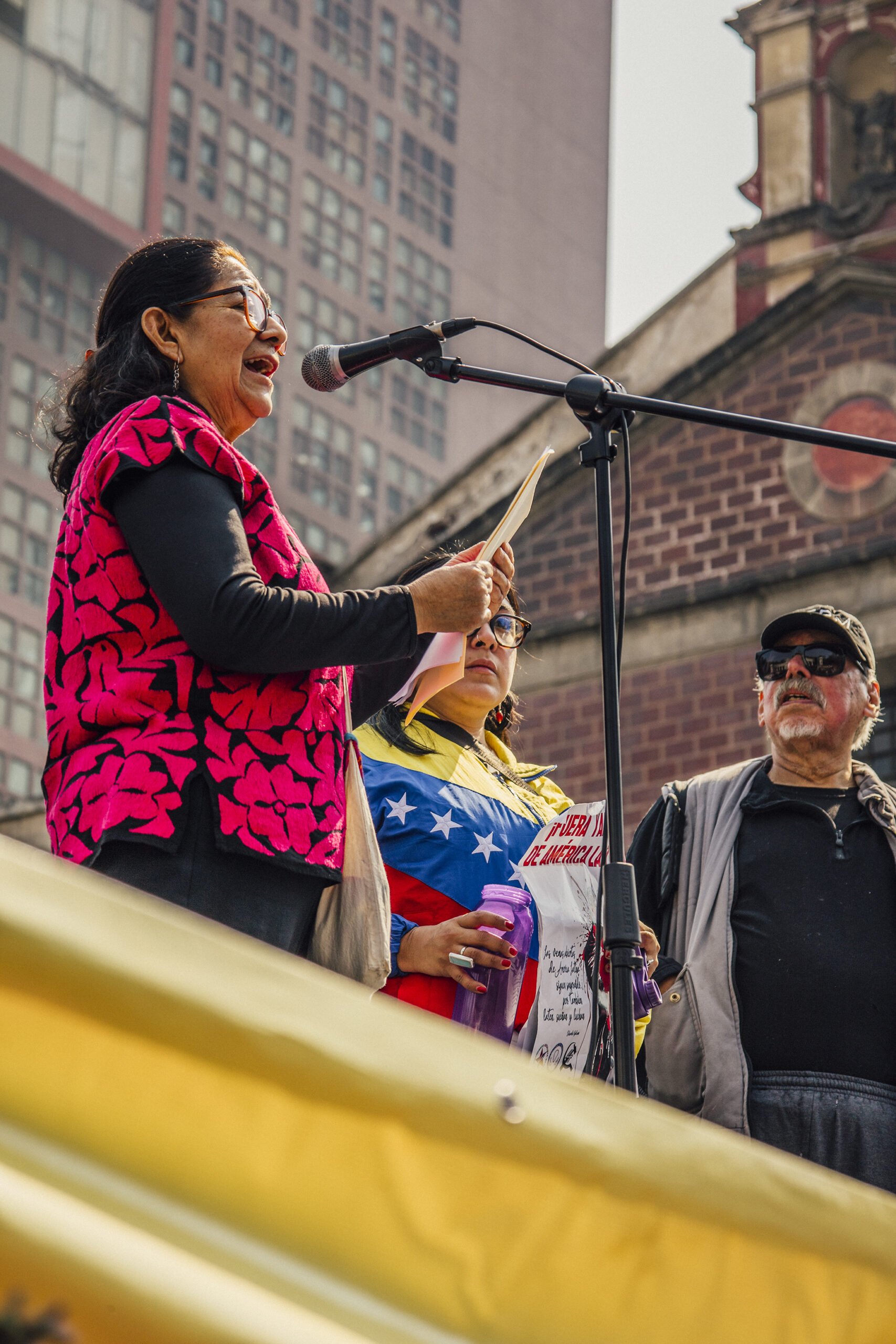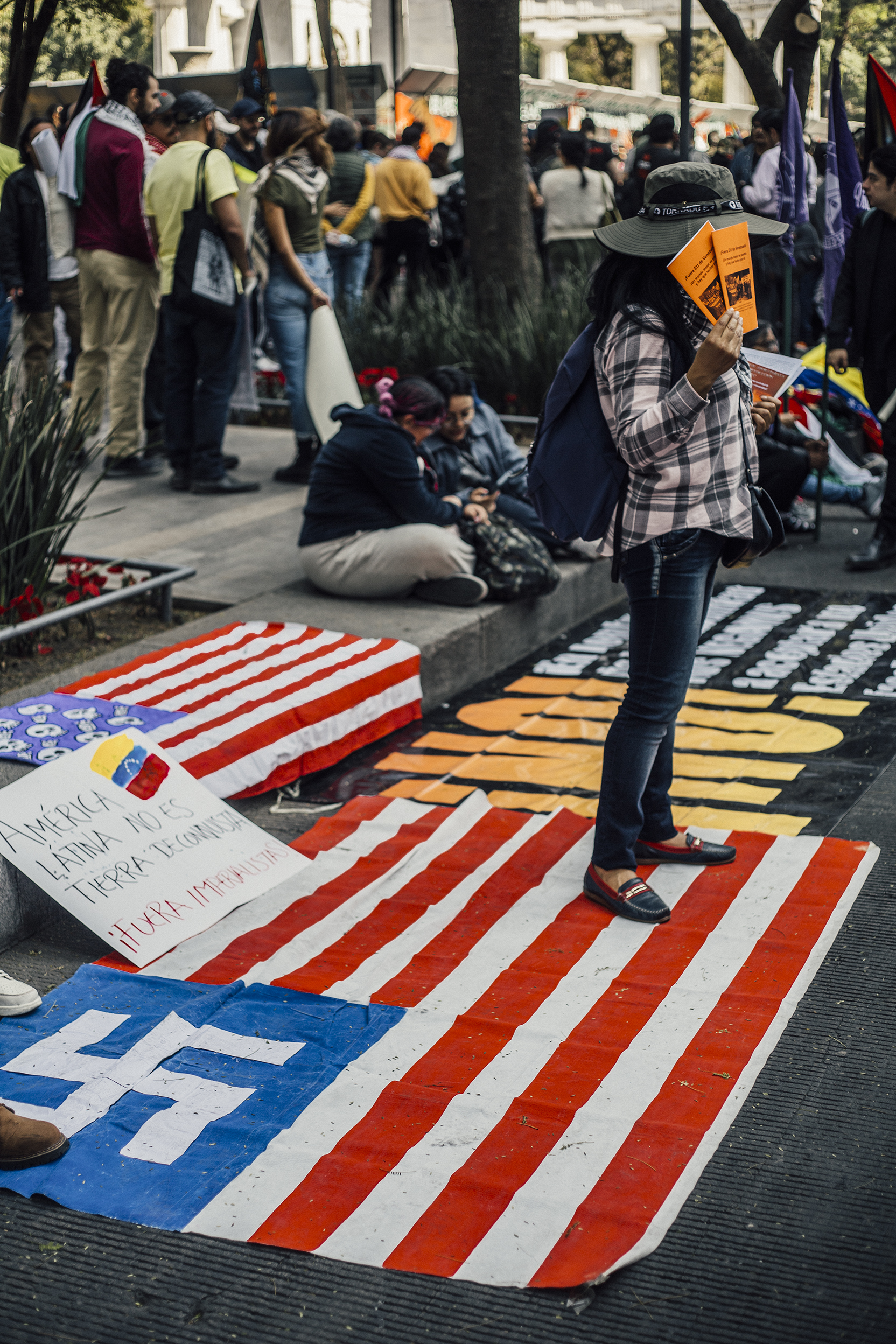 Trade unions, left wing political parties, collectives, and social organizations easily filled Paseo de Reforma, while speakers at the endpoint emphasized the importance of a more proactive stance from the Mexican government as well as continent-wide unity against US imperialism, its aggressions and local assets. US imperialism has entered a deeper and more aggressive phase on the continent, coinciding with the release of last year’s National Security Strategy, which identifies the Western Hemisphere as a US “sphere of influence.”