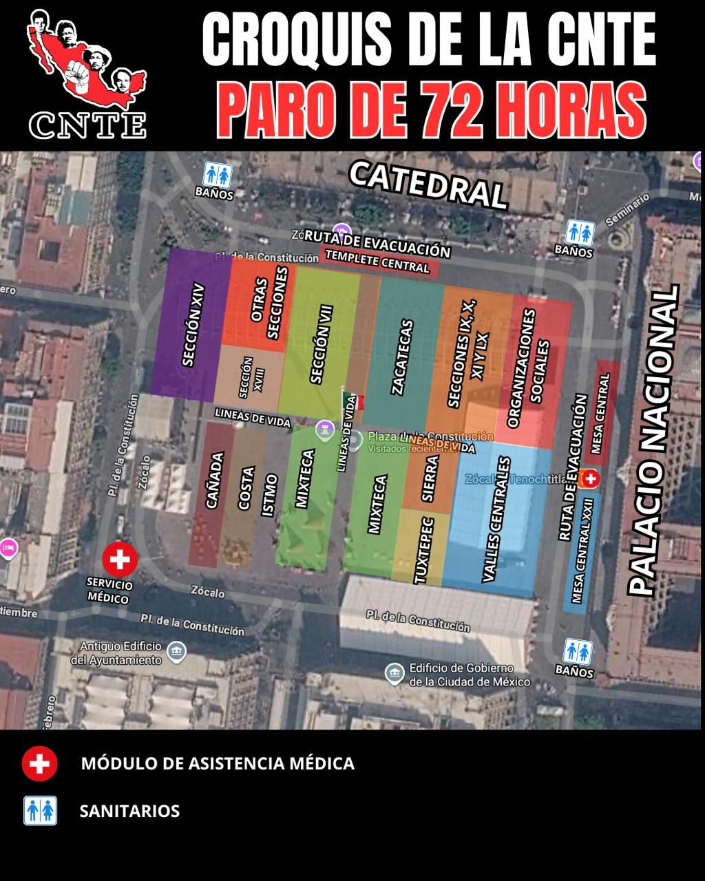 The reactivation of the National Strike launched by the CNTE this Wednesday, March 18, will begin with a march from the Angel of Independence to the Zócalo in Mexico City, possibly passing by some embassies, according to a statement from Section 9.